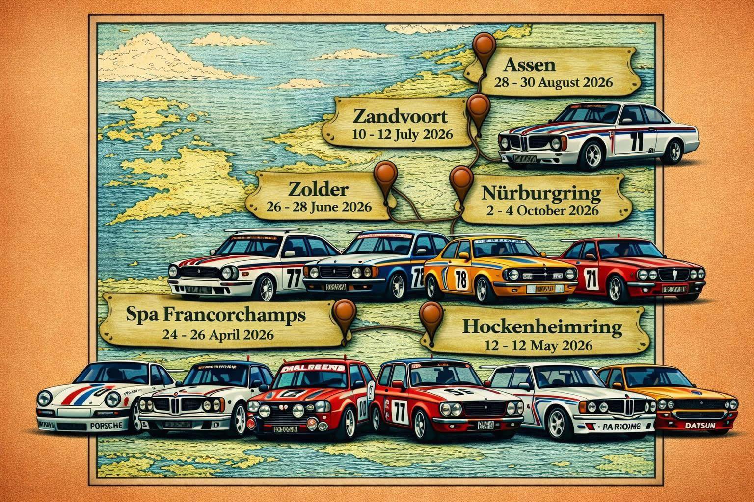 Over vijf weken gaat het Fast Seventies raceseizoen van start op Spa-Francorchamps, tezamen met de ETC1300, voor de eerste editie van de ETCC Seventies Revival. Het ziet ernaar uit dat er minimaal 50 auto's van start zullen gaan! Heb je nog niet ingeschreven, laat je niet afschrikken, Spa is een lange baan, dus er kunnen er nog meer bij! En er is meer goed nieuws, want vanwege deze nu al succesvolle samenwerking heeft de Fast Seventies organisatie besloten de inschrijfgelden voor de drie gezamenlijke raceweekenden (Spa, Zandvoort en Assen) te verlagen. En er is ook nieuw over de andere drie weekenden (Hockenheim, Zolder en de Nürburgring), want daar wordt een extra race aan het progranmma toegevoegd en dat kost je maar een paar tientjes extra (*voor degenen die al ingeschreven hebben geldt natuurlijk de laagste prijs). Voor het volledige overzicht, alle informatie en om je in te schrijven voor individuele races of de Package Deal ga je naar de website fastseventies.nl.