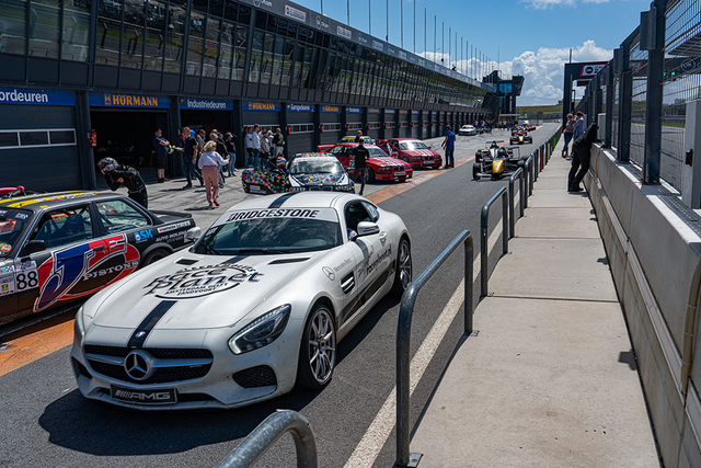Terwijl de racewagens op de Vrij Rijden dag hun rondjes draaiden, verzamelden de Vrienden van de HARC en hun introducés zich in de HARC-pitbox voor de inschrijving en de lunch. De ruim 70 aanwezigen werden verdeeld over 5 groepen, met namen als James Hunt, Niki Lauda en… Bertrand Gachot. Die laatste moesten sommigen toch even opzoeken, maar oudgediende Zandvoortgangers kennen hem nog wel. De sfeer was opgetogen, maar ook een beetje gespannen, iets waar de raceactiviteiten op de baan en in de pits volop aan bijdroegen.