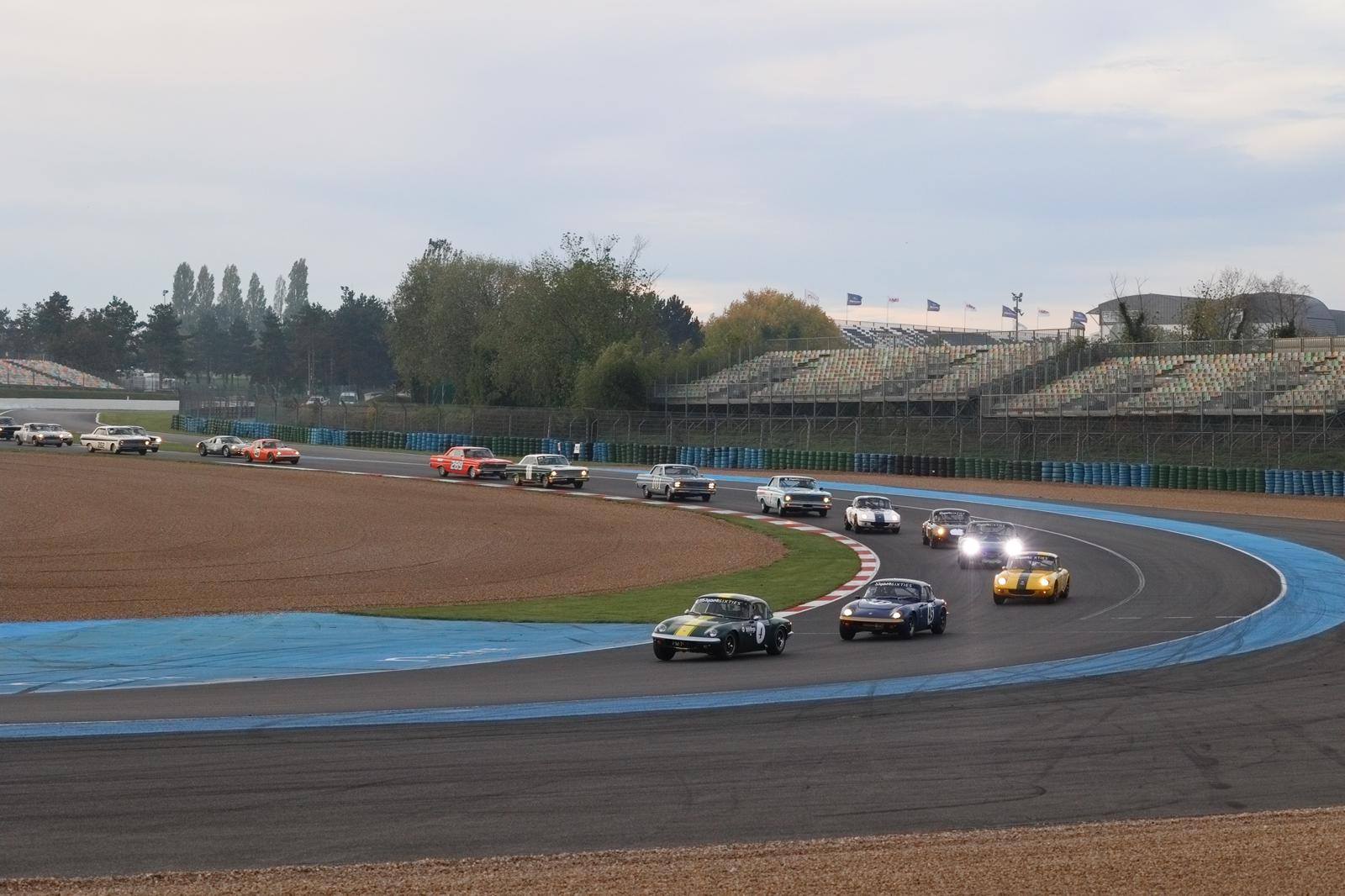 Bob Stevens was de te kloppen man in de SuperSixties-kwalificatie op Magny-Cours. Jan van der Kooi gaf 0,6 seconde toe en kon zijn tijd niet meer verbeteren na een uitstapje door het grind. Luc de Cock en Damien Sionneau zorgden ervoor dat de top vier volledig uit Lotus Elans bestond. De eerste dikke V8 was de TVR Griffith van Christophe Germain op de vijfde plaats. Malivaï Castelli maakte het 5 Lotus Elans in de top-6. Carlo Hamilton was de snelste van de toerwagens op de 7e plaats, net voor Norbert Gross, Hemmo Vriend en Deenik/Sinke, allen in Ford Falcons, met de Lotus Elan van Jos Stevens als indringer op de 7e plaats. In GTS11, dit weekend allemaal MGB's, was onze Australische gastrijder Paul Cruse een stuk sneller dan de vier vaste deelnemers. In CT06 toonden lokale coureurs Charles-Edouard Rousseau en Romain Guerardelle de weg aan Smeer/Izaks en Bernd Horlacher, uiteraard allemaal in Mini Coopers. Tot slot, in CT08, de Lotus Cortina-klasse, reed Marcel Wentzel een razendsnelle ronde, waardoor hij en zijn bijrijder Hanna Grade de klasse pole veroverden, voor Julius Junck. Met leiders in de tussenstand Jan van der Kooi, Luc de Cock en Norbert Gross allemaal op de 2e of 3e plaats in hun klasse, beloofden de twee races op zondag interessant te worden.