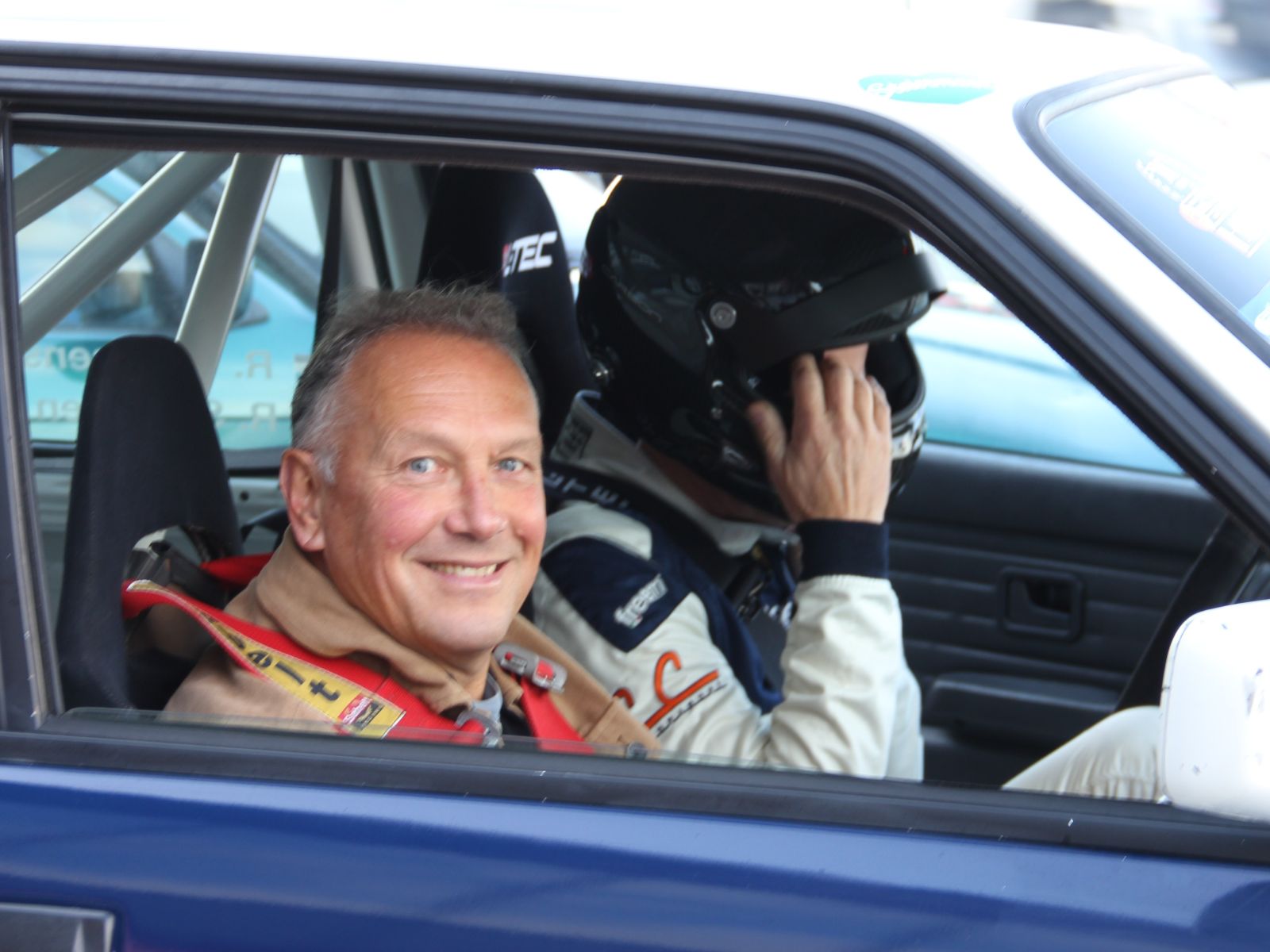 Jan-Wim Stals ging me meenemen in een Volkswagen Polo in een (ongeracete) Cup-versie. Met helm op, maar verder in mijn gewone straatkloffie, gingen we eerst even passen in de passagierstoel, de riemen strak afgesteld. Na een paar solo rondjes om de auto op te warmen, kwam Jan-Wim weer binnen. En terwijl ik me met camera installeerde in mijn stoel, werd even snel de bandenspanning gecontroleerd. Jan-Wim stapte weer in en reed de pitstraat uit. Dan gaat het gelijk volgas, de Gerlach door en de Hugenholtzbocht in. Als je op tv onboards van Max of iemand anders bekijkt van die bocht, zie je de banking en de lijnen. Vanuit de auto zie je hetzelfde, maar voel je iets totaal anders. Je wordt hard in de stoel geduwd, de banden voel je de grip zoeken, de auto hangt vervaarlijk scheef en de rijder stuurt met korte bewegingen de auto helemaal tot bovenin de banking. En omdat zo’n Cup-Polo natuurlijk geen dempingsmateriaal heeft, hoor je de auto piepen, kreunen, gieren door de bocht. Verrassend genoeg merk je weinig van de kerbs. Met de grote snelheid hoor je de banden eroverheen rattelen, maar de auto rijdt er strak overheen. Op het Scheivlak schuif je bijna uit de stoel, zo’n hoge snelheid heb je daar. En ik heb met grote verbazing gekeken welke lijnen er achterop het circuit gereden worden, bocht 9 en 10 zijn bijna blind, dus daar stuur je op ervaring doorheen in plaats van op zicht. En die lijnen zijn een stuk ruimer dan je zou denken, waarmee precies op het juiste moment de kerbs worden geraakt. Vervolgens bij de Hans Ernstbocht hang je compleet in de riemen in de remzone, om dan op drie wielen dwars door het opgeworpen grind op de baan heen te blazen. Een normaal mens zou misschien het grind willen ontwijken, maar hier ligt altijd grind op de baan en de heren en dames coureurs zijn het gewend. In de Luyendykbocht is de banking minder spectaculair dan in de Hugenholtz, mede ook omdat je in deze auto’s veel lager in de bocht zit.